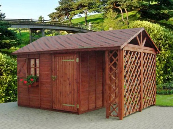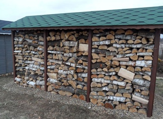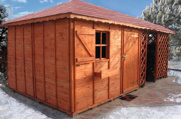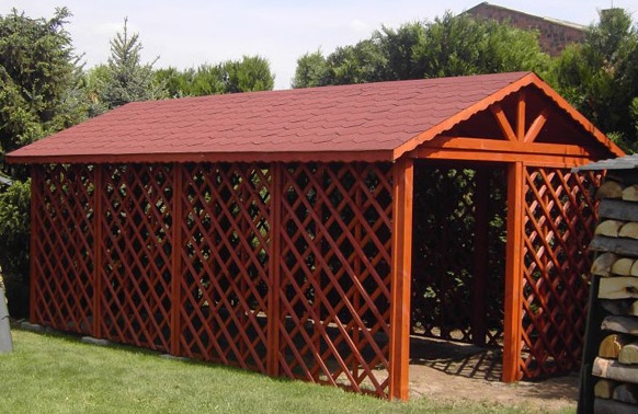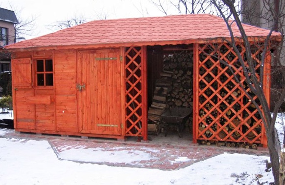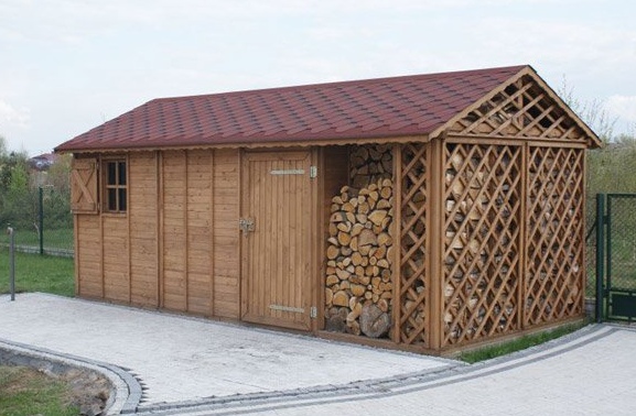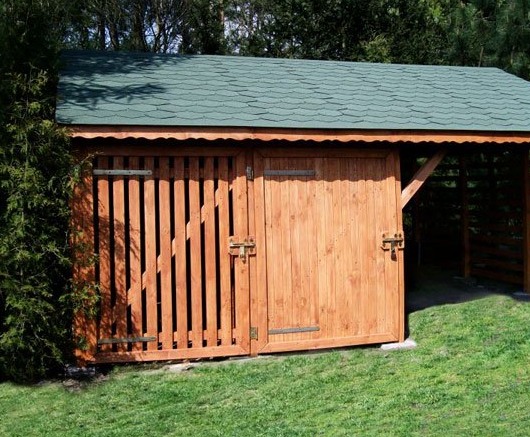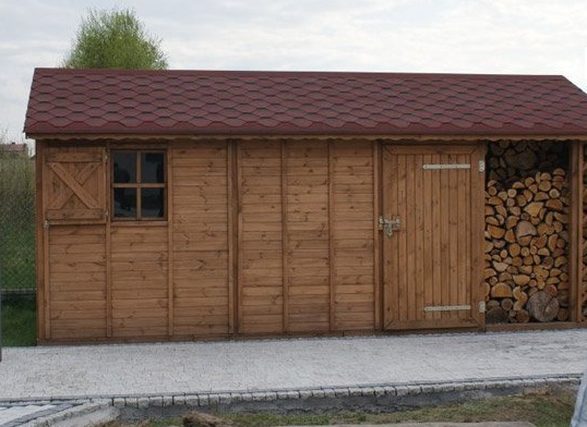 Dřevník může být použit k ukládání dřeva, nářadí, jízdního kola, domácíchí spotřebičů. Velikost 3x6 m, bez podlahy, střešní štít.