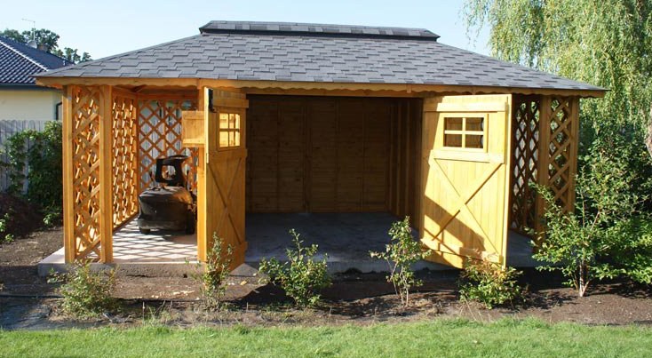 Dřevník s garáží