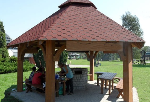 Střecha je vyrobena ze speciálního materiálu, upravá tak, aby odváděla kouř z grilu. Cena nátěru podle požadovaného odstínu, střecha = šindel vínový, hnědý, zelený nebo grafit.