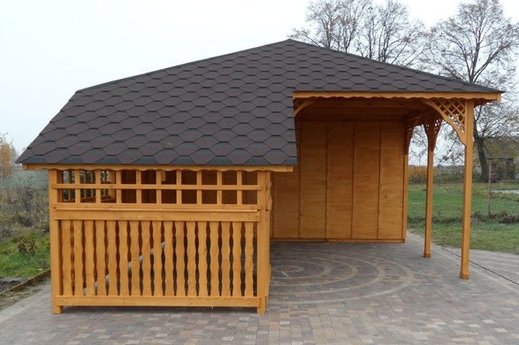 Altán ve velikosti 4,5 x 4,5 m + střecha.